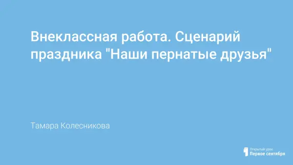 Праздник посвящен обобщению знаний учащихся по окружающему миру, проводится в увлекательной игровой форме. Экологический материал, подобранный к сценарию, воспитывает любовь к природе, расширяет знания детей о птицах, условиях их обитания, активизирует знания учащихся, повышает интерес к предмету.