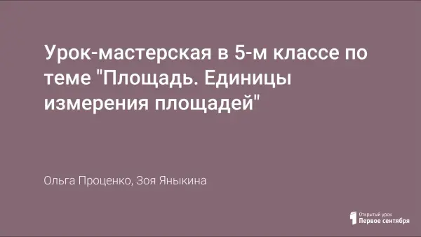 Урок-мастерская в 5-м классе по теме "Площадь. Единицы измерения площадей"