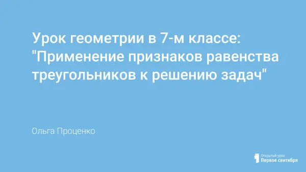 Признаки равенства треугольников – важнейший «инструмент для решения геометрических задач. Поэтому главная задача учителя в курсе геометрии 7-м классе – научить учащихся владеть этим «инструментом».