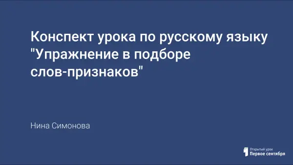 Личностно-ориентированный урок по русскому языку по программе «Школа-2100». Тема урока: упражнение в подборе слов-признаков. Ученики продолжают знакомство со словами-признаками (именами прилагательными), учатся ставить вопросы к словам-признакам, развивают умение подбирать слова-признаки к словам-предметам.