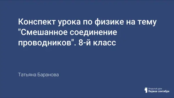 Работа на уроке направлена на знакомство учащихся со смешанным соединением потребителей тока. Закрепляются знания учащихся о различных соединениях проводников; формируется умение решать задачи на применение метода блоков для расчета общего сопротивления проводников при их смешанном соединении.