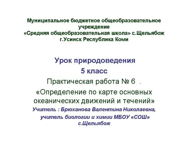 Практическая работа по теме "Определение по карте основных океанических движений и течений". 5-й класс