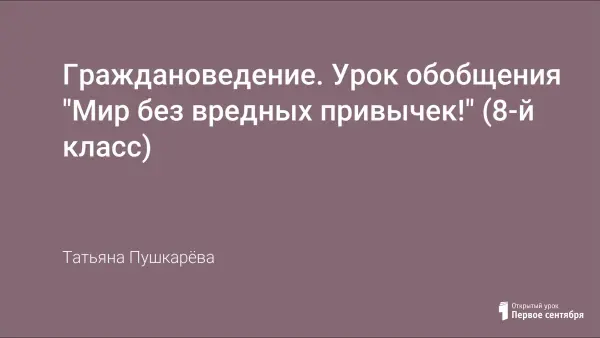 Урок проверяет уровень знаний школьников о вредных привычках (курении, алкоголизме, токсикомании и наркомании), их пагубном влиянии на организм человека; создает негативное отношение к вредным привычкам.