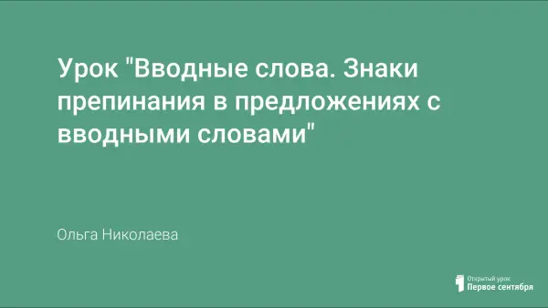Первый урок по теме "Вводные слова". Учащиеся знакомятся в игровой форме с учебным материалом. На материале упражнений демонстрируются вопросы культуры речи, развивается умение анализировать устную и письменную речь с точки зрения отношения собеседника к той или другой ситуации, основываясь на использовании вводных слов, формируется пунктуационная зоркость.