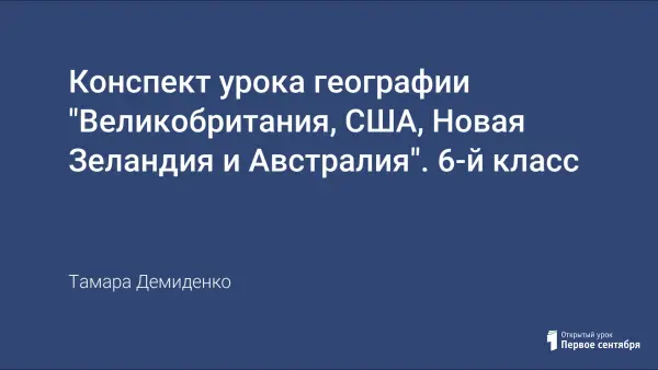 Конспект урока географии "Великобритания, США, Новая Зеландия и Австралия". 6-й класс
