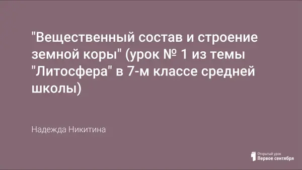 Первый из трех уроков по теме «Литосфера и ее строение». Уроки строятся в форме беседы с элементами повторения, попутного и итогового закрепления. Из-за большого объема материала, который дается не только в устной форме, но и в анализе карт, таблиц, рисунков и схем, записи в тетрадях фиксируют только основные выводы.