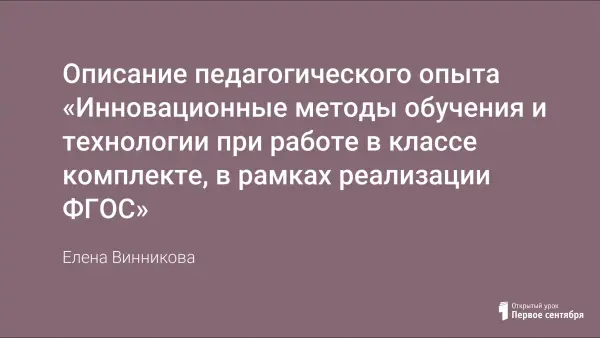 В работе представлено описание педагогического опыта автора, раскрыты некоторые аспекты при работе с классом комплектом, через конкретные приёмы и формы работы. Представлены методы формирования у обучающихся универсальных учебных действий по предметам в начальной школе, определены пути повышения познавательной активности обучающихся на уроках. Обучение в классе комплекте предусматривает, преимущественно поисковый характер обучения, роль учителя в таких условиях – направляющая. Ведь любая инновация направлена, в первую очередь на изменения с целью получения какого-то нового более качественного результата. Конечно, невозможно ребёнка обучить всему, дать ему готовые представления и знания буквально обо всем. Но его можно научить получать знания самостоятельно, анализировать ситуацию, делать выводы, находить решение для задачи или проблемы, которую он не решал. Сосредотачивая усилия на повышение качества и эффективности учебной и воспитательной работы, необходимо добиваться того, чтобы каждый урок способствовал развитию познавательных интересов обучающихся, активности и творческих способностей, и, следовательно, повышению качества обучения. Значительное место в работе занимает описание современных педагогических технологий и методов и их применение в работе с обучающимися. В работе представлены результаты учебной деятельности. Показана динамика достижений обучающихся. Имеются приложения, которые отражают результаты обучающихся и продукт их деятельности. Данная работа может быть полезна для учителей начальных классов. К работе прилагается презентация и видеофрагменты из опыта работы.