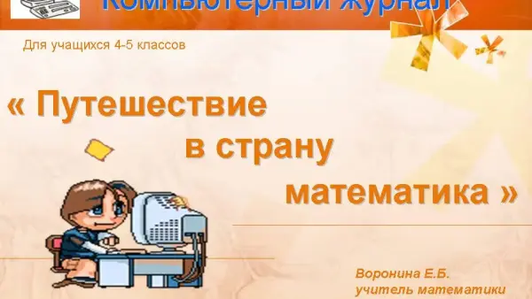 Компьютерный журнал «Путешествие в страну математика», выполнен в виде презентации и предназначен не только для внеклассного мероприятия по математике, но может быть использован удаленным педагогом для дистанционного занятия, который хочет увлечь ребят математикой в рамках проведения недели математики, а также для учащихся, которые интересуются математикой, имеют ограничения по здоровью, занимаясь на дому дистанционно.