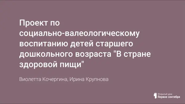 Проект по социально-валеологическому воспитанию детей старшего дошкольного возраста "В стране здоровой пищи"