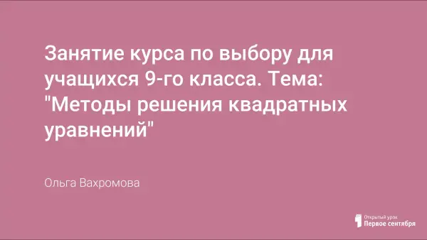 В школьном курсе математики изучаются формулы корней квадратных уравнений, с помощью которых можно решать любые квадратные уравнения. Однако имеются и другие способы решения квадратных уравнений, которые позволяют очень быстро и рационально решать многие уравнения. Квадратные уравнения – первый вид уравнений, где возможно начать формирование целостного подхода к решению уравнений. Целостное представление о методах решения уравнений позволяет выходить на решение более сложных уравнений, положительно влияет на формирование общей математической культуры учащихся.