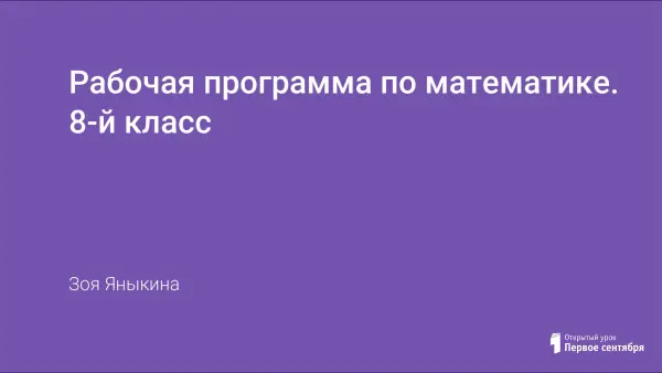Рабочая программа по математике для 8-го класса основного общего образования составлена на основе Федерального компонента Госстандарта основного общего образования, примерной программы по математике. Федеральный базисный учебный план для образовательных учреждений РФ отводит 210 ч. для обязательного изучения предмета «Математика» в 8-м классе. «Алгебра», «Геометрия», «Вероятность и статистика» - разделы предмета «Математика» целесообразно проводить обучение методом блочной подачи материала.