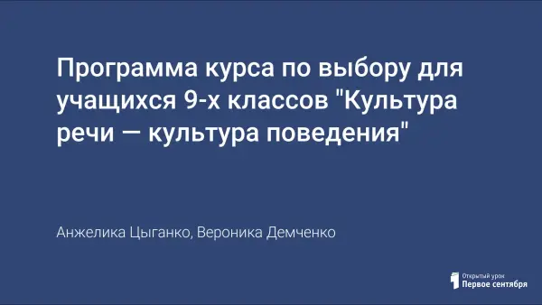 Программа курса по выбору для учащихся 9-х классов "Культура речи — культура поведения"