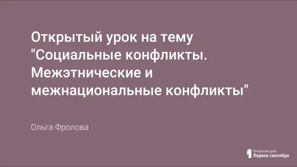 На уроке изучается понятие "социальный конфликт", его сущность, развиваются аналитические способности, воспитывается умение общаться с людьми.
