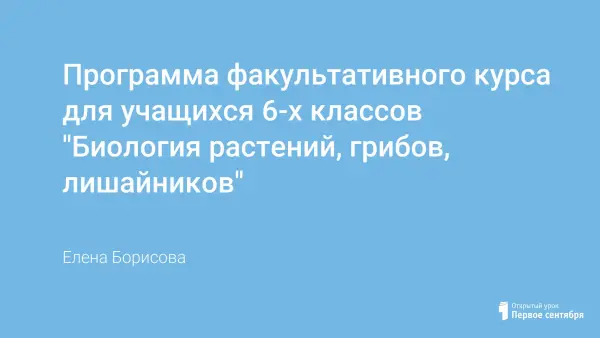 Факультативный курс предназначен для учеников 6-го класса. Материал, знание которого необходимо для сдачи ЕГЭ по биологии, включен в программу данного курса (строение и химический состав клетки, строение растительных тканей, внутреннее строение стебля и корня, циклы развития мхов, папоротников, голосеменных и покрытосеменных растений). Предусмотрено выполнение практических работ и проведение экскурсий.