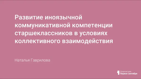 Изменения в условиях образовательной деятельности, вызванные переходом к информационному обществу и активизацией международного сотрудничества, делают актуальной проблему развития иноязычной коммуникативной компетенции в условиях коллективного учебного взаимодействия. Речь идёт не просто об обучении в группе, а о такой организации работы, когда обучающиеся общаются между собой как внутри своей группы, так и за её пределами, вступая во взаимодействие с участниками других групп.