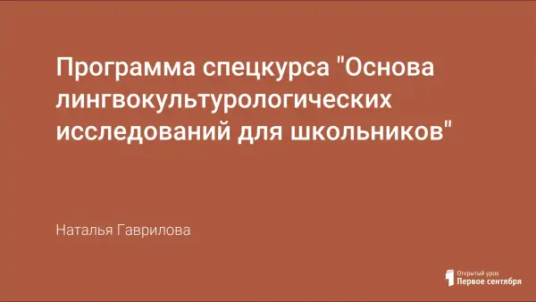 В статье представлена разработанная и апробированная автором программа спецкурса для филологического профиля. Курс формирует начальные навыки исследовательской деятельности в области лингвокультурологии. Лингвокультурологическая составляющая курса предполагает знакомство обучающихся с культурой стран изучаемого языка через английский язык.