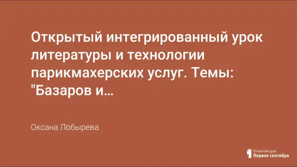 На интегрированном уроке анализируется история любви Евгения Базарова к Анне Одинцовой, раскрывается характер героя. Развивается умение видеть мир чувств и переживаний героев, применять полученные знания, способность четко формулировать свои мысли. Ученики знакомятся с инструментами для укладки волос;