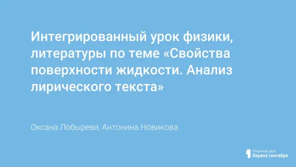 Интегрированный урок физики, литературы по теме «Свойства поверхности жидкости. Анализ лирического текста»