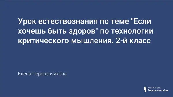 Урок естествознания с использованием технологии развития критического мышления. Цели урока: сформировать представление о здоровье как одной из главных ценностей человеческой жизни; выделить компоненты здорового состояния человека.