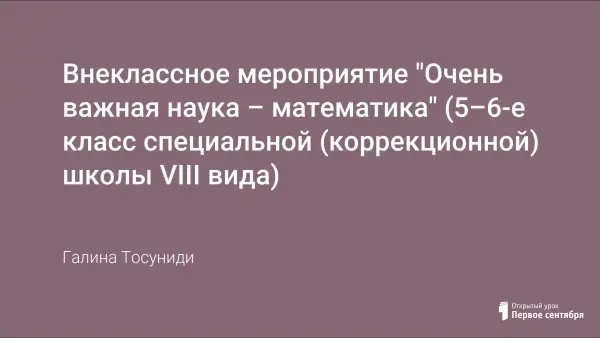 Учащиеся специальных (коррекционных) образовательных школ имеют специфические особенности познавательной деятельности, затрудняющие формирование у них математических знаний. Материал данного урока является одним из труднейших для усвоения детьми. По этой причине дети без особого интереса относятся к математике. В задачи учителя входит преодолеть равнодушие, умственную инертность учащихся. Внеклассные мероприятия и позволяют пробудить у школьников интерес и к учебному материалу, и к самому предмету.