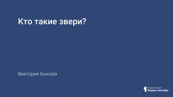 Проведен урок в первом классе по теме "Кто такие звери?" с целью: познакомить учащихся с классом звери, выявить важные признаки данного класса, продолжить обучение практическому исследованию предметов природы, обобщить знания о животных. Урок дополнен презентацией.