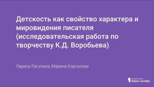 Детскость как свойство характера и мировидения писателя (исследовательская работа по творчеству К.Д. Воробьева)