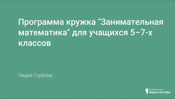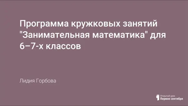 Представляется часть программы кружковых занятий по математике “Занимательная математика”. При построении кружковых занятий учитывается главная закономерность обучения, сформулированная дидактами: «Чем разностороннее деятельность учащихся, тем выше качество усвоения знаний». Они должны приносить детям глубокое удовлетворение, радость познания.