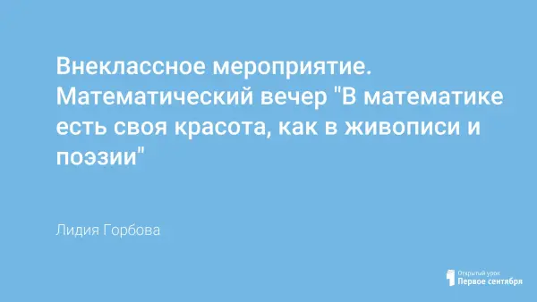 Данное внеклассное мероприятие проводится в форме устного журнала и показывает интеграцию математики с другими науками: литературой, историей, философией, которые кажутся очень далёкими от неё. Мероприятие способствует привитию вкуса к хорошей поэзии, а также ставит целью оживить и сделать более интересным преподавание математики.