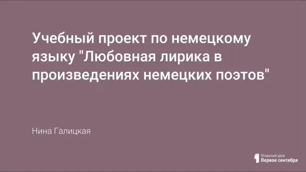 В своей работе я предлагаю ребятам старших классов творческие задания по переводу немецкой лирики. Стихи о благороднейших человеческих чувствах, озаряющих сердца и судьбы, стихи, в которых печаль о неразделённой любви нередко скрашивается радостными интонациями, созвучны с состоянием души и настроением подростков.