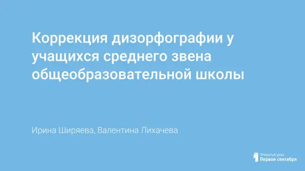 Коррекция дизорфографии у учащихся среднего звена общеобразовательной школы