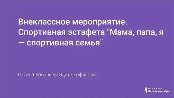 Предлагаемый конспект внеклассного мероприятия-эстафеты "Мама, папа, я – спортивная семья" позволит учителю сплотить детский коллектив и родителей, повысить интерес к спортивным соревнованиям, развивать выносливость, быстроту реакции, меткость.