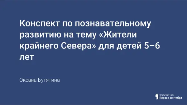 Цель занятия: углубить и расширить знания детей о народах Севера, их быте и деятельности. Задачи: развивать любознательность и интерес к особенностям жизни народов Севера; воспитывать уважение к малым народам, проживающим на севере нашей страны; побуждать детей изучать жизнь и быт других народностей проживающих на территории РФ.