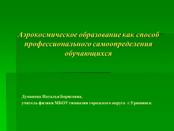 Аэрокосмическое образование развивает интеллект детей, расширяет кругозор, формирует не только наглядно-образное, но и теоретическое мышление. Учителя МБОУ гимназии разработали дополнительную образовательную программу «Мы – дети Галактики». В результате планомерной работы ежегодно гимназисты представляют свои исследовательские работы и проекты на конкурсах. Семнадцать учащихся МБОУ гимназии стали студентами МГТУ им. Н.Э. Баумана.