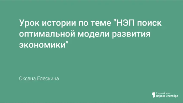 В ходе урока учащиеся анализируют особенности хозяйственной жизни в Советской России 20–30-х годов XX века и пытаются определить оптимальную и эффективную модель развития экономики.
