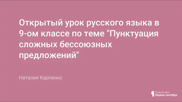 План-конспект открытого урока русского языка в 9-м классе, который призван обобщить, систематизировать и углубить ЗУН учащихся по синтаксису сложного бессоюзного предложения, совершенствовать пунктуационные умения и навыки по изученной теме.
