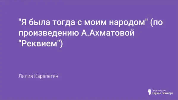 Соотнесение судьбы и творчества - вот задача, стоящая перед автором данной разработки. Вершина творчества – "Реквием" – интерпретирован как исповедь безутешного сердца человека, жившего со своим народом в один из самых трагических периодов его истории.