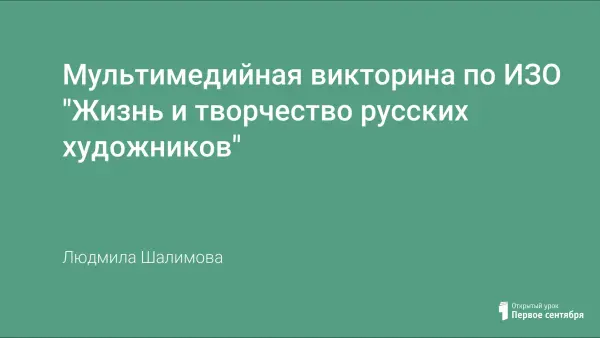 В работе представлена мультимедийная презентация учебно-познавательной викторины по теме "Жизнь и творчество русских художников". Викторину можно провести в качестве обобщения темы на уроках ИЗО, МХК или во внеурочной работе. Презентация содержит материал из жизни выдающихся русских художников, посвященный их творчеству и жизни, и построена на основе флеш-анимации.