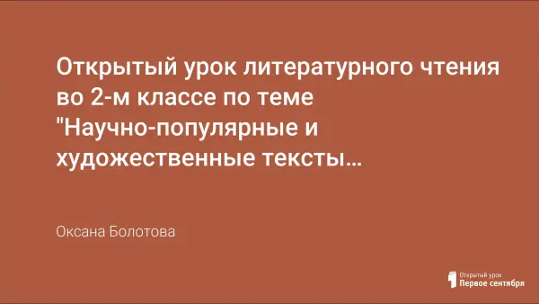 На уроке в ходе сравнительного анализа двух текстов (заполнение таблицы) создаются условия для формулировки определения "научно-популярный текст". Продолжается формирование первичных исследовательских навыков, начатое ещё в первом классе, а в ходе групповой работы идёт развитие коммуникативных элементов деятельности.