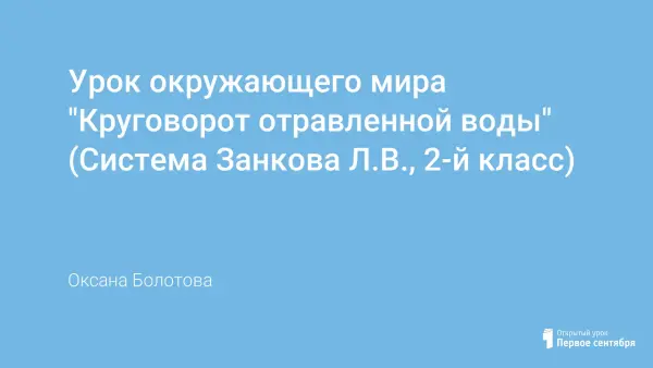 Представленный урок является обобщающим уроком темы «Круговорот воды в природе» во 2-м классе. Работа с учащимися на предыдущих уроках выявила необходимость рассмотрения вопросов экологии на отдельном уроке, чтобы дети задумались о проблемах всерьёз и сами сделали необходимые выводы о роли человека в природе.