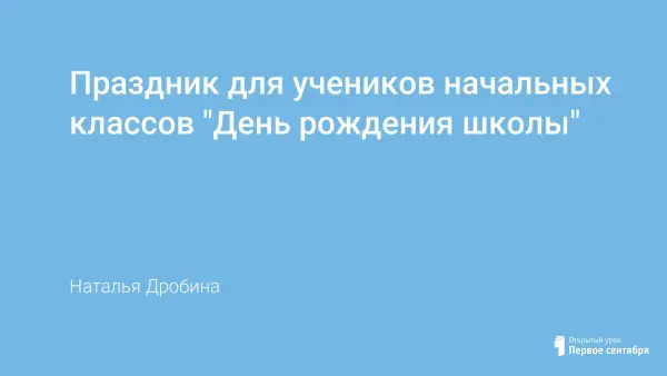 В статье содержится сценарий проведения праздника для учеников начальных классов "День рождения школы", цель которого – популяризация роли школы в жизни общества.