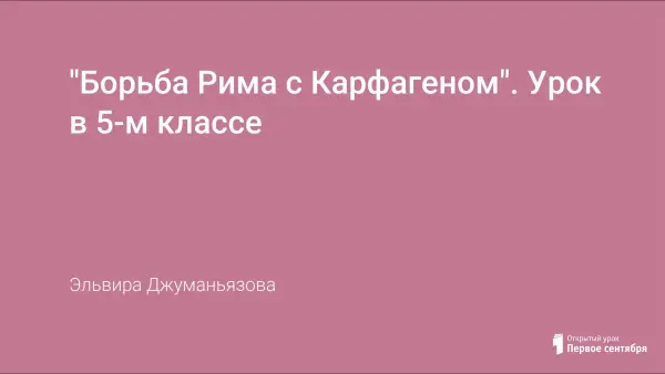 Урок из курса "Древний мир" в 5-м классе, раздел "Древний Рим". Цель урока: изучить процесс завоевания Римом Западного Средиземноморья.