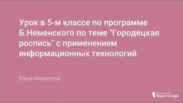 Разработка урока и электронное приложение знакомит с народным промыслом России - Городецкой росписью, с историей развития росписи, приемами кистевой росписи. Электронное приложение позволяет учащимся познакомиться с искусством Городца.