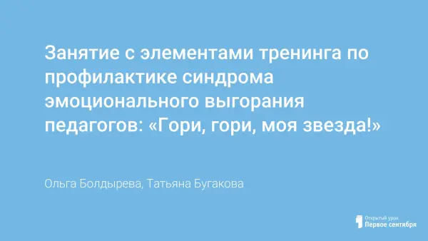 Занятие с элементами тренинга по профилактике синдрома эмоционального выгорания педагогов: «Гори, гори, моя звезда!»