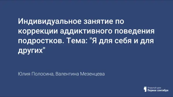Индивидуальное занятие по коррекции аддиктивного поведения подростков. Тема: "Я для себя и для других"