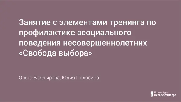 Занятие с элементами тренинга по профилактике асоциального поведения несовершеннолетних «Свобода выбора»