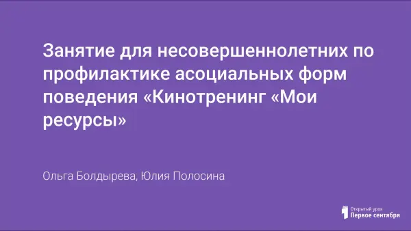 Занятие для несовершеннолетних по профилактике асоциальных форм поведения «Кинотренинг «Мои ресурсы»