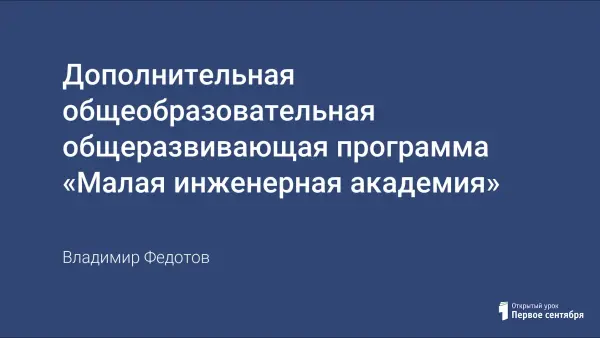 Программа научно-технического объединения «Малая инженерная академия» направлена на воспитание современных детей как творчески активных и технически грамотных начинающих инженеров, способствует возрождению интереса молодежи к технике, в воспитании культуры жизненного и профессионального самоопределения. Актуальность программы состоит в необходимости овладения будущими разработчиками основ проектирования аппаратной и программной частей автоматических и автоматизированных изделий, начиная со знаний электронной элементной базы. Цель программы: формирование комплекса знаний, умений и навыков в области применения технологий механики, робототехники, инженерного дизайна CAD для обеспечения эффективности процессов проектирования и изготовления изделий.