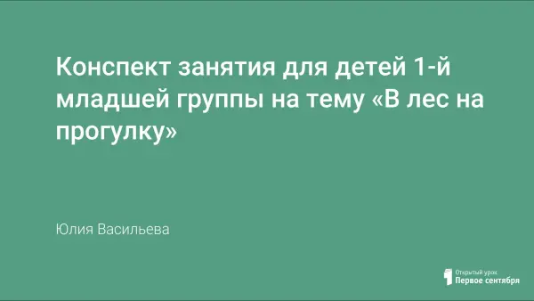 Занятие «В лес на прогулку» направлено на развитие у детей 1-й младшей группы представлений о лесе, его обитателях. В частности, в ходе занятия дети рассматривают внешний вид ели и характерные особенности зайца. Занятие способствует развитию бережного отношения к природе, формированию навыков поведения в природе.