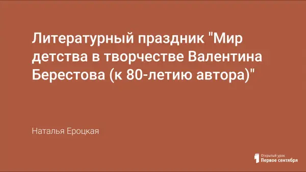 Праздник подготовлен и проведён в связи с юбилеем автора. Сценарий праздника построен по этапам жизни человека. Использование блока стихов «Корзинка» обусловлено трепетным отношением поэта к природе. В контекст сценария включён элемент театрализации (чтение сказок «Злое утро», «Честное гусеничное» по ролям).
