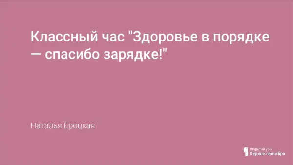 Внеклассное мероприятие несет в себе популяризацию здорового образа жизни, привлечение учащихся к ежедневному проведению утренней зарядки. Пока дети первоклассники, очень важно научить их выполнять простейшие физические упражнения, и делать это надо эмоционально. Одним из положительных примеров может служить представленный классный час.